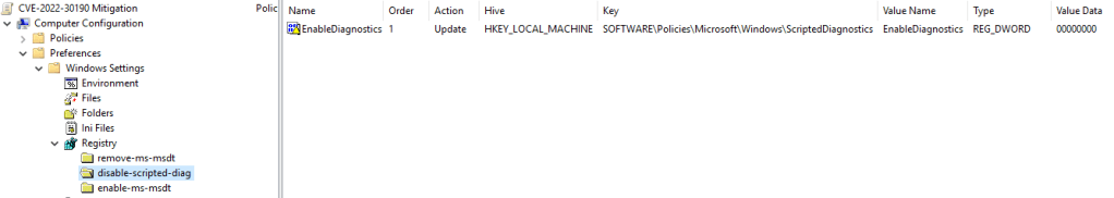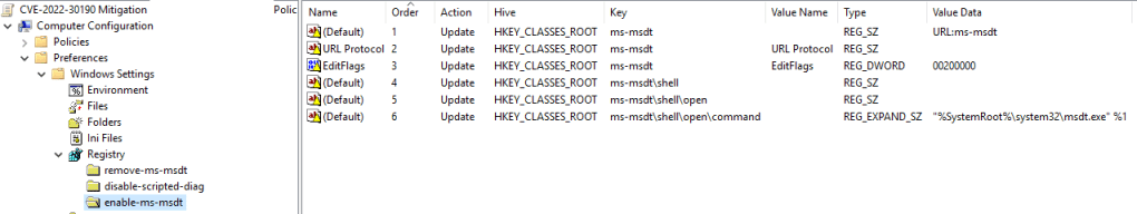 Targeting ‘enable-ms-msdt’ collection to a non existent computer for quick restore of keys once vuln is patched