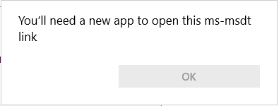 | HKEY_CLASSES_ROOT | ms-msdt\shell\open\command | none (default) | REG_EXPAND_SZ | “%SystemRoot%\system32\msdt.exe” %1 |